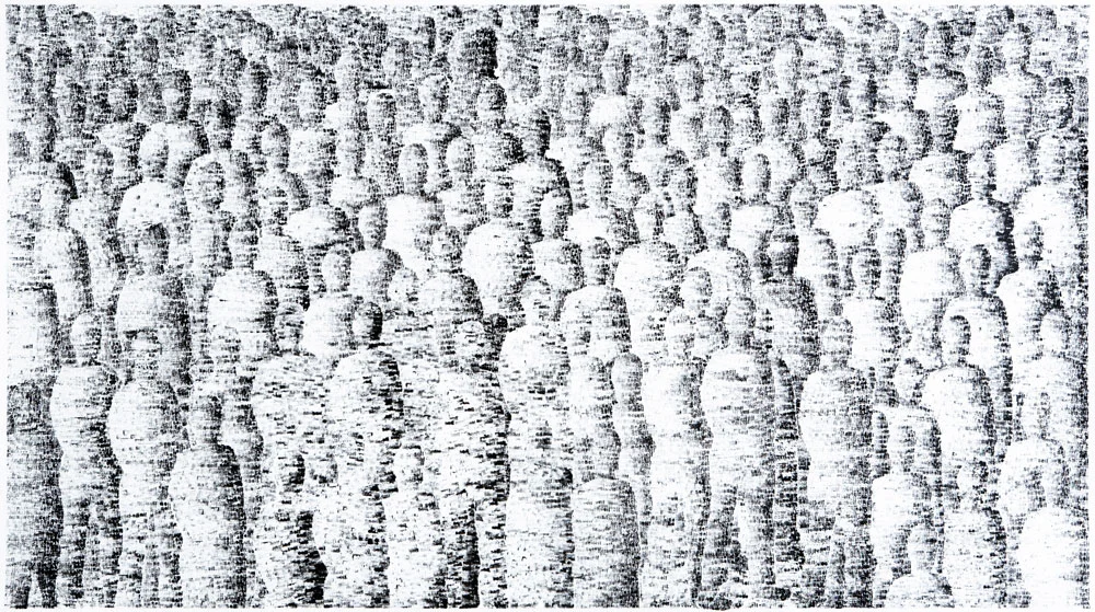 Usha Seejarim, Every man for himself /the drop’s denial of it’s ocean-ness (2009), Ink on Fabriano by stamp, 780 x 1380 mm